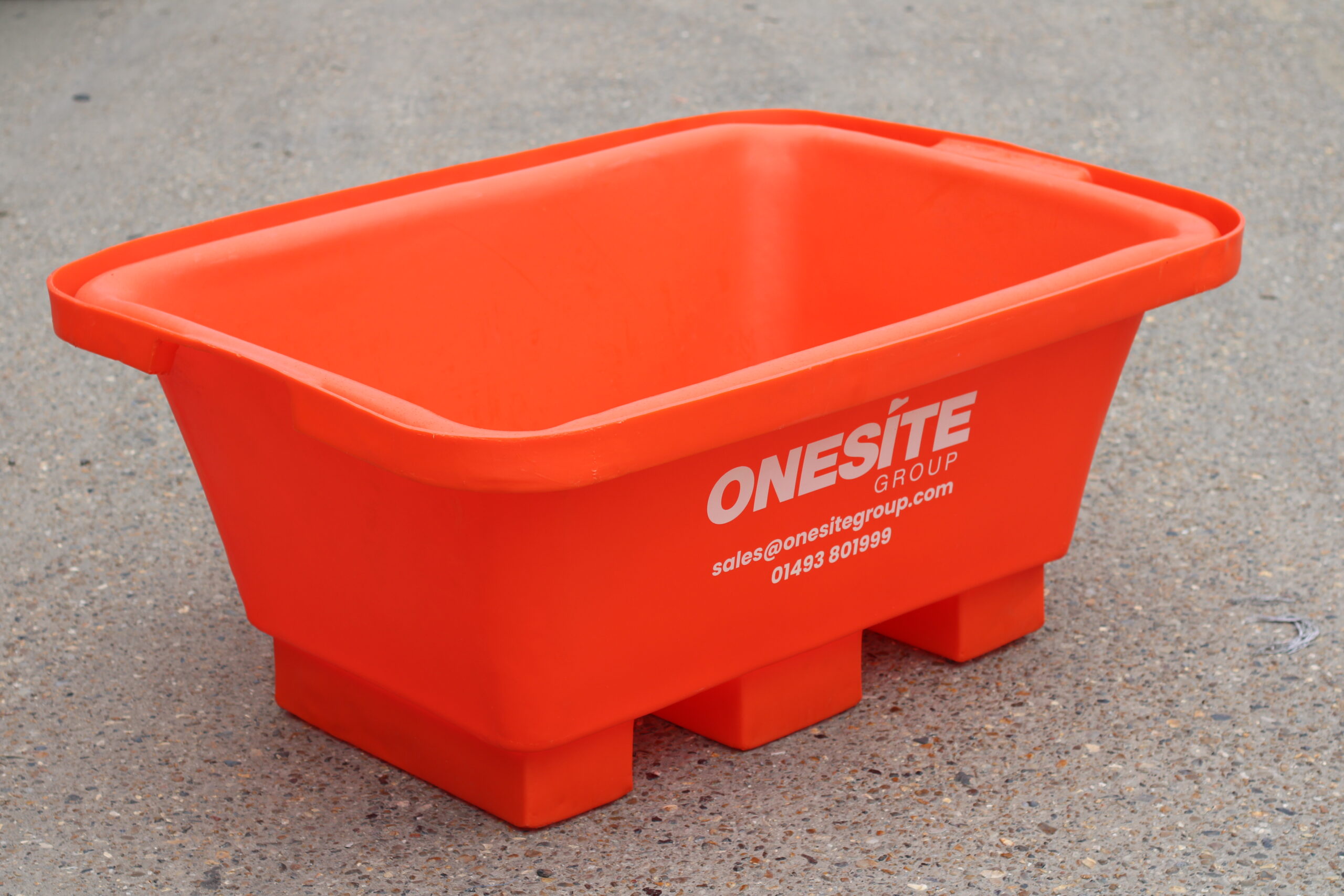 Our plastic mortar tubs are built to be moved around building sites using a fork lift. Both the base and the rim can be used to pick up this tub. Dims: L1180xW860xH540mm